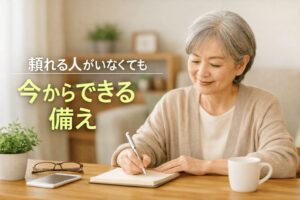一人老後で孤独を防ぐには、人とのつながりを作ることに加えて、助けを頼める先を見える形で持っておくことも現実的な備えになります。